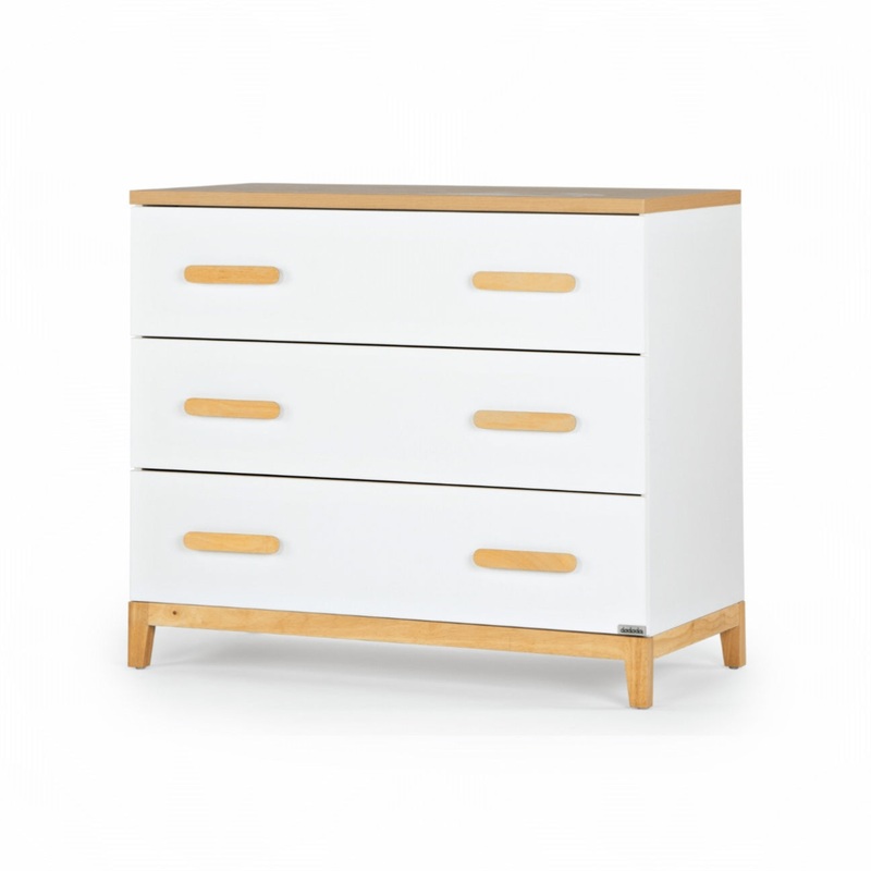 DaDaDa Lala Little 3-Drawer Dresser, White / Red Oak Features